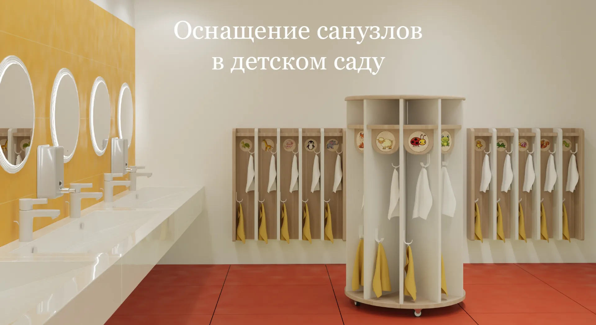 переоснащение групп, комплексное оснащение новых детских садов, комплексное оснащение нового детского сада на этапе проектирования.