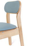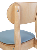 Стул выполнен из массива берёзы и покрыт лаком, сиденье и спинка выполнены из берёзовой фанеры и качественной экокожи с устойчивостью к истиранию 80000 циклов. Стул имеет оптимальный наклон спинки, а скругленные углы и надежные крепления делают его безопасным. Такой стул идеально впишется в обстановку актового и музыкального зала, а так же детских комнат и спален дошкольного учреждения.